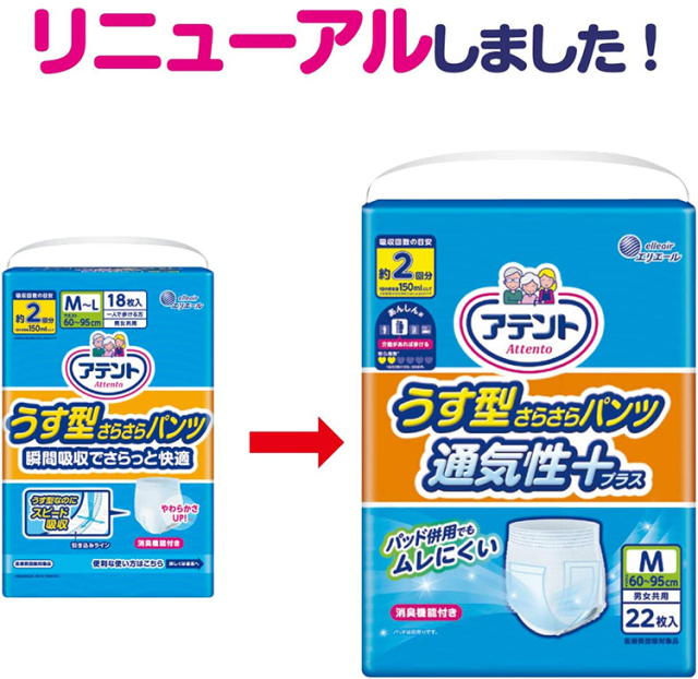 吸収回数の目安:約2回分(1回の排尿量150mlとして)
